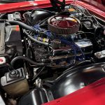 Power is supplied by the desirable optional N-code 429 cubic inch V8, breathing through a four-barrel carburetor and factory-rated at an impressive 360 horsepower — delivering effortless torque, strong acceleration, and a deep, authoritative exhaust note enhanced by the dual system with chambered mufflers. Chrome-dressed underhood components (Edelbrock air cleaner and valve covers) plus MSD ignition add visual and reliability appeal, while a recent oil change keeps the big-block fresh. The smooth three-speed automatic transmission routes power to the rear wheels, supported by an optional rear axle ratio that likely aided towing capability (consistent with the trailer towing package noted).