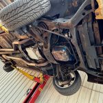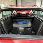 Finished in vibrant Candyapple Red (original factory code T; believed refreshed under prior ownership), the exterior proudly displays the full-length simulated woodgrain appliqué, split front grille, concealed headlights, luggage rack, and the legendary three-way Magic Doorgate — a versatile hallmark that opens as a conventional tailgate, drops down as a load floor, or swings open to the side for easy access. The commanding stance is subtly modernized with 18-inch Coys five-spoke alloy wheels wrapped in Toyo Extensa HP tires, while upgraded power-assisted front disc brakes (with rear drums) deliver confident stopping power for its substantial size.