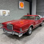 This 1976 Lincoln Continental Mark IV is a striking Lipstick Luxury Group example finished in vibrant Lipstick Red (paint code 2U) with white pinstripes and a matching white vinyl roof, creating one of the boldest and most eye-catching color combinations of the mid-1970s personal-luxury era. Signature features include hidden headlights, opera windows, power-operated sunroof, cornering lights, dual exhaust outlets, remote-adjustable side mirrors, power-telescoping antenna, and 15-inch forged aluminum wheels wrapped in 235/75 Hankook Optimo H724 thin-whitewall tires. Power-assisted disc brakes on all four corners and variable-ratio power steering make this large coupe surprisingly manageable despite its size.